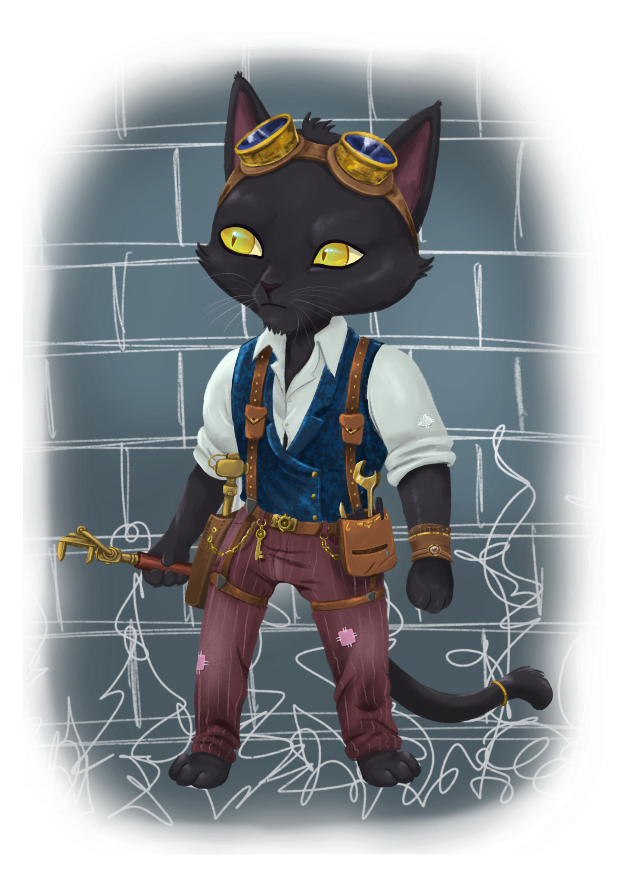 Blade era un ágil gato negro con resplandecientes ojos amarillos, hábil con las canicas y las herramientas, y aún más hábil para sobresaltarse fácilmente. Como era de esperar, el repentino eco de su nombre en los edificios que bordeaban la plaza le provocó un salto monumental en el aire, con la espalda arqueada. ¿Dónde había estado? Acurrucado, profundamente dormido, escondido debajo de un arbusto, soñando con palomas.
