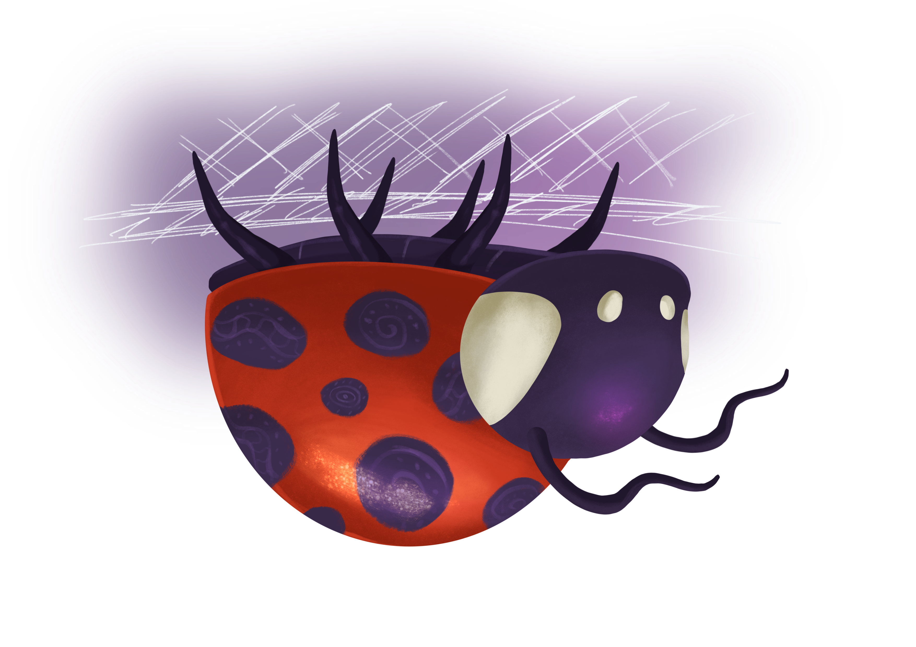 Fiel a su naturaleza, Blade había saltado por reflejo ante el repiqueteo repentino, golpeando su cabeza contra el techo. Sin que él lo supiera, la mancha sospechosa se había transferido a su frente en el proceso. Se transfirió, porque la mancha sospechosa era en realidad una mariquita que, en el impulso del momento, decidió probar si posarse en la cabeza de un gato era más divertido que posarse en el techo.